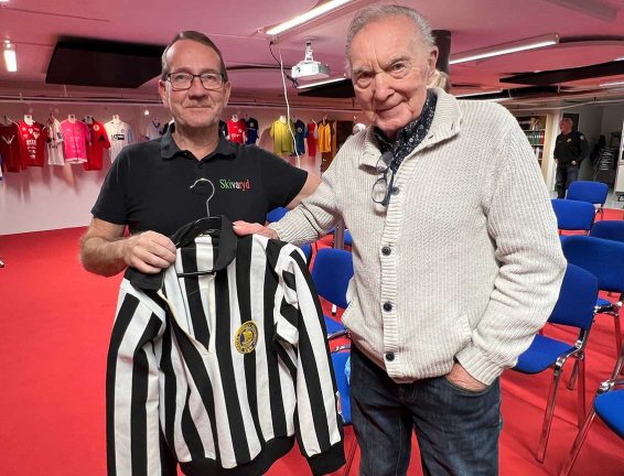 Janne Aronsson tog emot den domartröja som Uno skänkte till Skivaryd i november 2024.