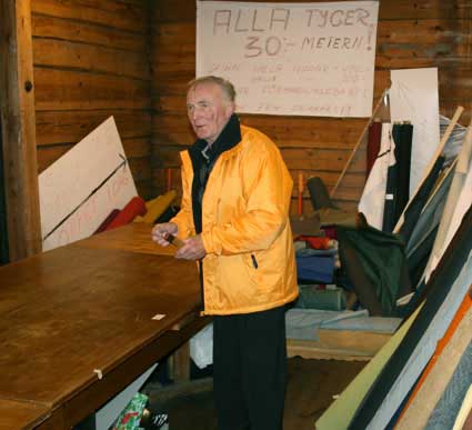 Från Skivaryd besökte vi för några veckor sedan lokalen och Uno tog fram flera av de återstående tygrullar som vi fick för att täcka delar av borden i våra utställningslokaler. Vi är inte färdiga med att sy dem till passande mått så Uno får aldrig se dem i färdigt skick. Men vi kommer att minnas Uno lite extra när vi gör allt klart.