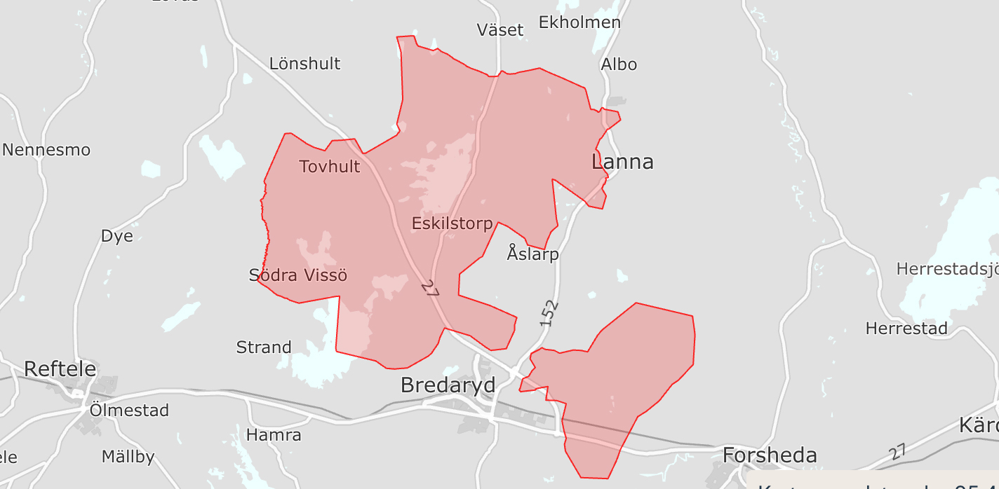 Nyheter Sedan 23-tiden är kring 565 av Eons kunder i Värnamo kommun berörda av strömavbrott.