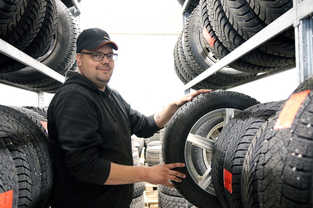 – Vi erbjuder däckbyten och däckhotell. Här finns däck i alla storlekar: från skottkärra till hjullastare. Vi kommer även att erbjuda enklare reparationer och service, både på bilar men även på tunga fordon. Visionen är att kunna anställa en person som tar hand om personbilssidan framöver. När det gäller däckhotellet så har vi just nu plats för 60 fordon, men planen är att vi ska bygga ett höglager så att det får plats ännu mer, säger han.