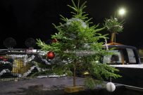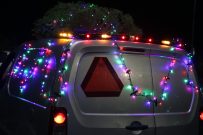 Fältgruppens bil var kvällen till ära dekorerad med en luciakrona på taket. [1/35]