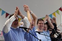 Glädjenkällan framför Brandsta City Släckers ”Rakt in i elden”
