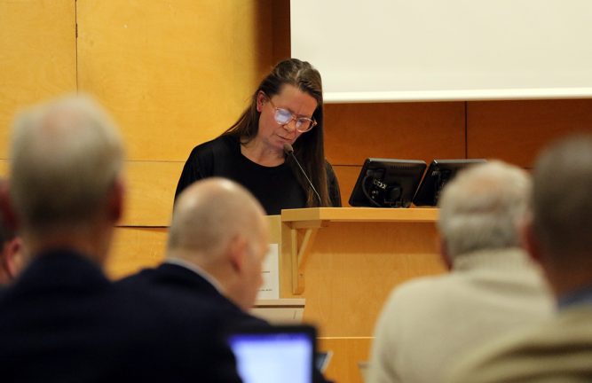 Katja Ganekind (SD) läser upp frågan. Bild: David Alin