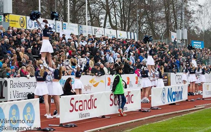 Vår arena är inget Colosseum eller nåt Ullevi. Runtomkring Finnvedsvallen klättrar skogsgrönskan och Lagan flyter stilla, ett levande väsen som ibland vid höga vattennivåer kan förvandlas till en hotfull, starkt strömmande urkraft. Men nu efter en snöfattig vinter och tidig vår syntes Lagan beskedlig som en flegmatisk jättesnok. För en poet som jag skapas det speciella stämningar med detta vackra vattendrag samtidigt som det spelas fotboll.