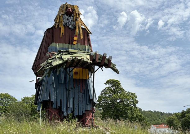 En gammal sägen förtäljer att en gång på forntiden var jätten Vist på väg hem från en fest i Västergötland. Med ett enda kliv tog han sig över från den västra till den östra sidan av Vättern. Hans fru var dock för trött och kunde inte ta klivet. Då tog Vist en väldig tuva och kastade ut på sjön för frugans skull. Det var på så sätt Visingsö bildades. Nu blickar jätten Vist trägestaltad och färgglad genom Calle Örnemarks försorg ut över Vättern vid E4 utanför Huskvarna. Han renoverades strax före Calle Örnemarks död 2015. Jag hörde honom i en intervju på Radio Jönköping. ”Jag är helnöjd”, sa Calle. Men jag hörde på rösten att han var försvagad av sjukdom.