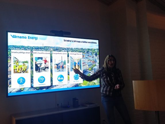 Marknadskommunikatör Madeleine Ståhl berättar om Värnamo Energis olika ben i bolagets hållbarhetsbete. Bild: David Alin