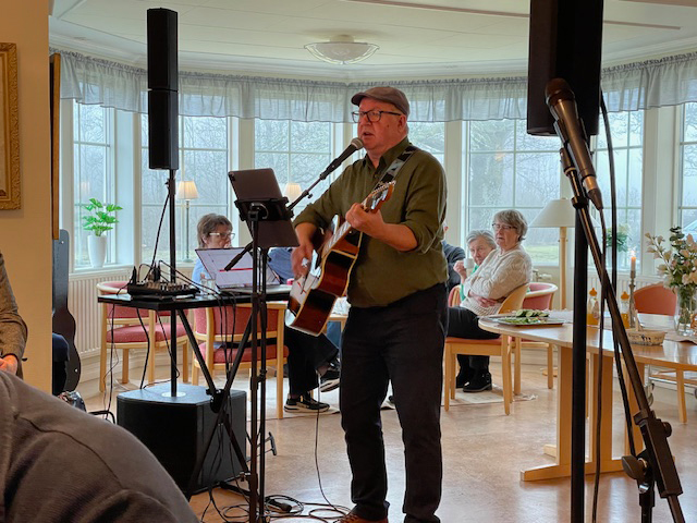 Totalt 5240 timmar av gemenskap med likasinnade. Detta är fantastiskt på bara ett år och betydelsefullt för många. Efter fikat släpptes Gösta fram med sin gitarr och spelkompisar som inte visade sig lekamligt. Det blev ”Många tårar” innan ”Solen gick ner i kväll” och ”Kristina” gillade ”Min gitarr”. Man ska ”inte säga nej” till att ” Börja om från början”. Mikael Wiehe ”tänker leva tills han dör” för ”sånt är livet”. Han hann också med en egen låt och flera andra kända dängor.