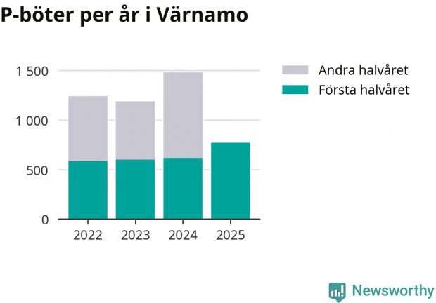 Under första halvåret 2025 har 771 parkeringsanmärkningar, med en total felparkeringsavgift på 511 900 kronor, delats ut på gatumark i Värnamo kommun. Det är 152 fler än under första halvåret 2024.