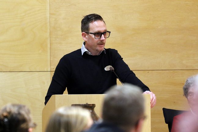 Filip Wihrén Andersson (M) besvarar interpellationen. Bild: David Alin