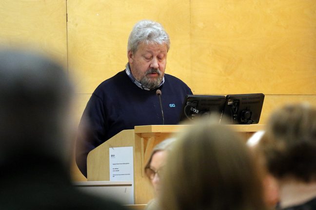 Jan Cherek (SD) läser upp interpellationen. Bild: David Alin