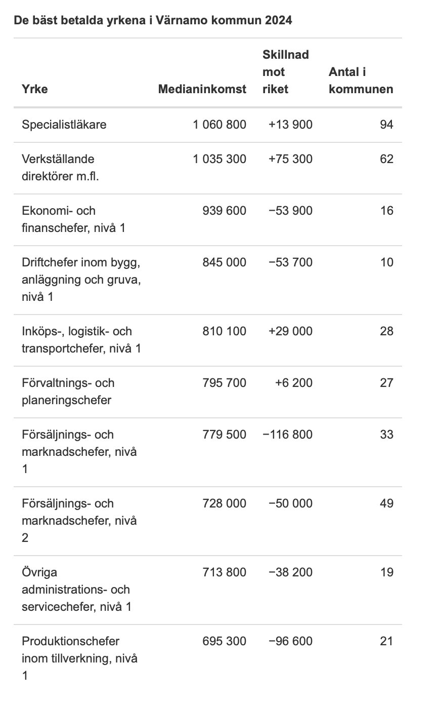 Nyheter Specialistläkare tjänar bäst i Värnamo kommun – och de har bättre inkomst här än genomsnittskollegan i landet. Det visar en sammanställning som SCB gjort. Se listan över kommunens bäst betalda jobb här.