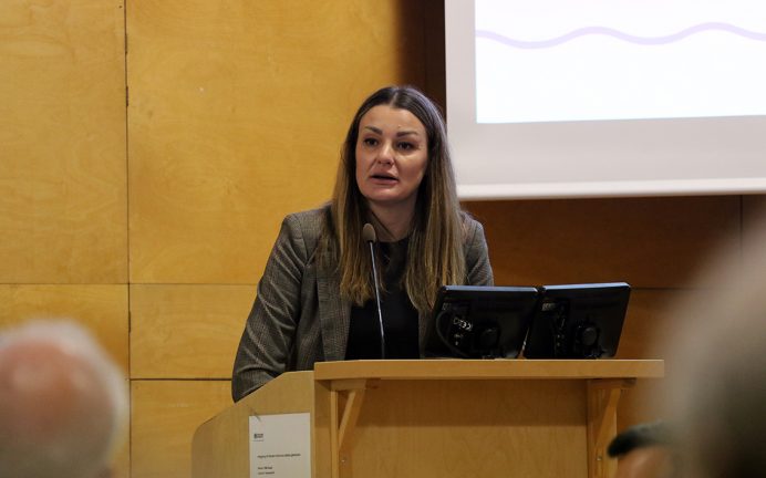 – Jag läste att 76 procent av eleverna nådde gymnasiebehörighet förra året och efter sommarskolan så var det 80 procent som nådde, vilket är jättebra. Hur spänner vi den bågen så att vi kommer ännu längre? undrar Azra Muranovic (S). Bild: David Alin
