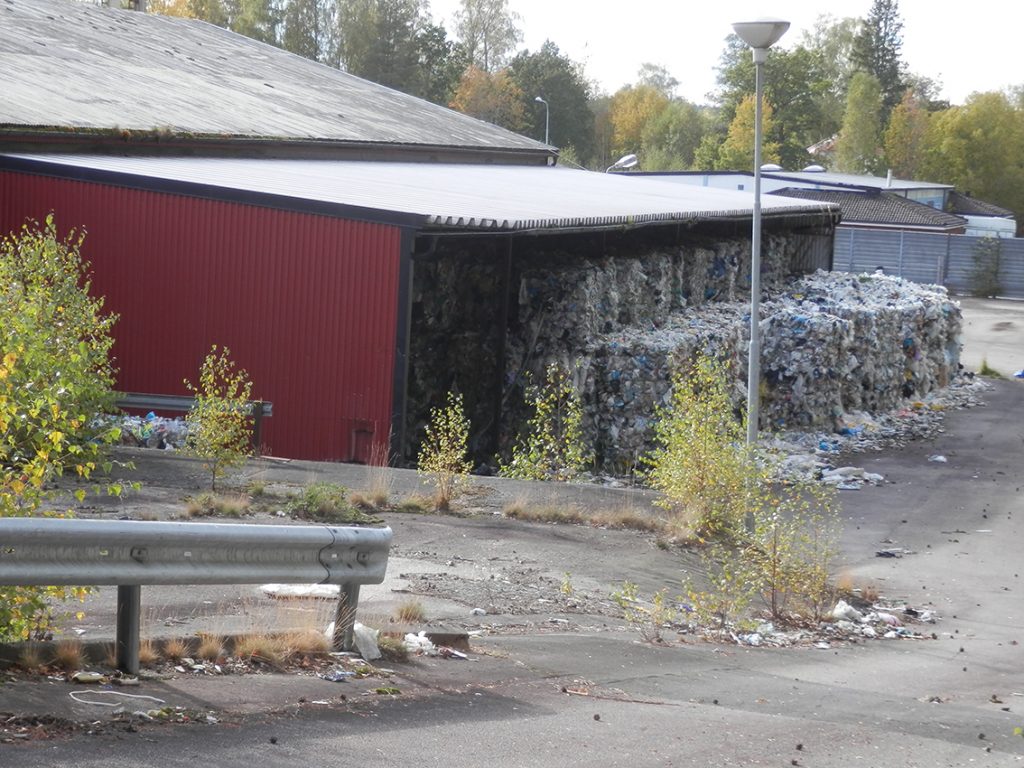 Plasten ska förvaras under skärmtak. Såväl södra sidan av lagerlokalen som norra sidan samt ytterligare en lagerlokal mot norr saknar skärmtak över stora delar av plastbergen.