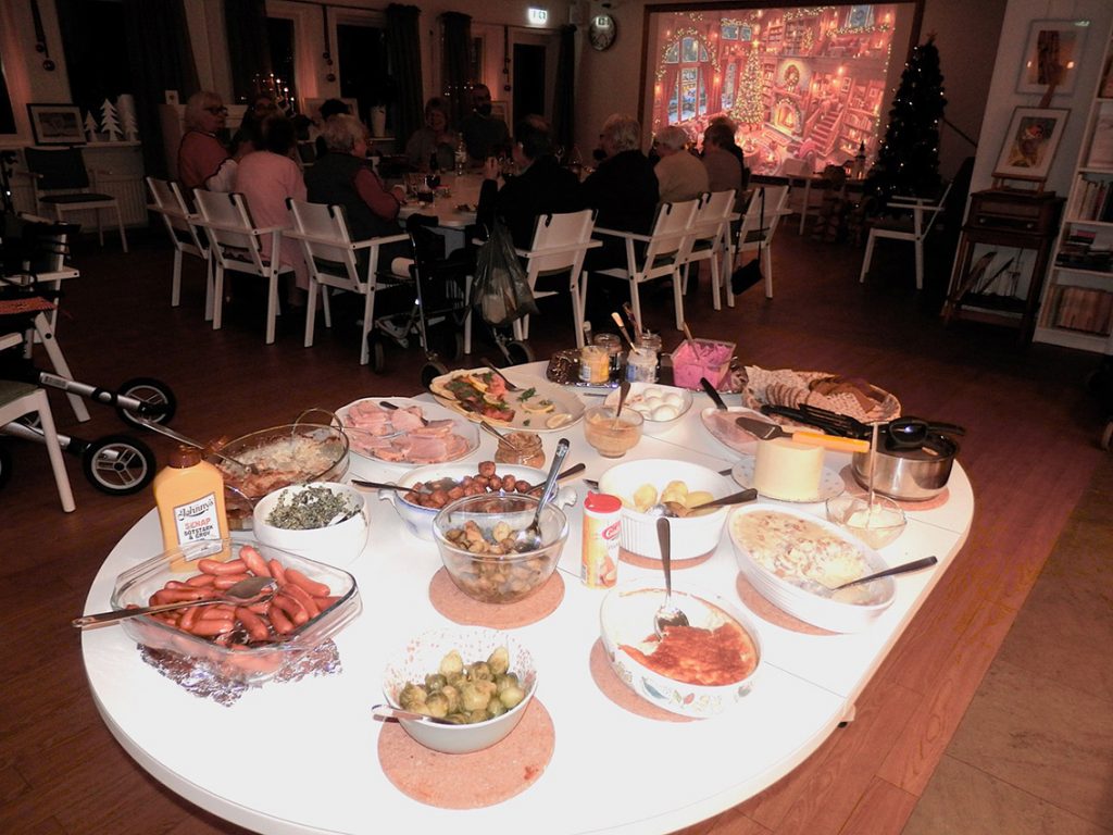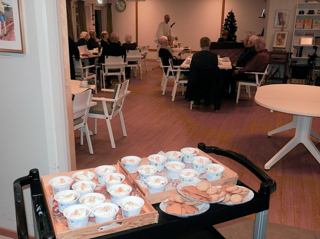 De boende som inte var i väg till släkt och vänner samlades i matsalen på julafton vid ett rikligt julbord med god och väl tilltagen julmat och ett Sjösala som var väl julutsmyckat av värdinnan Anna-Lena.