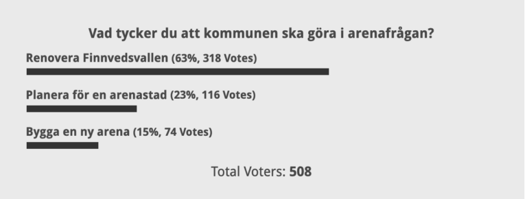 Flest röster fick alternativet ”Renovera Finnvedsvallen”, som fick 318 röster. Det motsvarar 62 procent av rösterna.