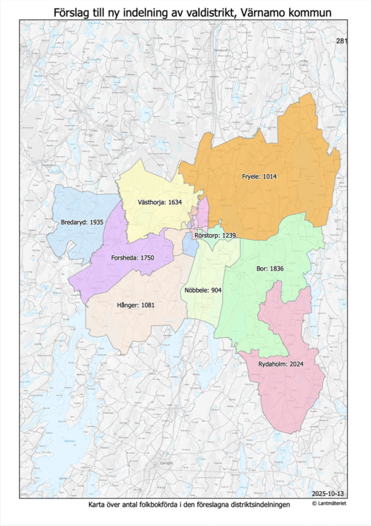 Bild på förslag till nya valdistrikt i Bor och Rydaholm. Bild: Värnamo kommun  [4/5]