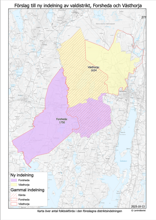 ∗ Valdistriktet Kärda delas upp. Området norr om 27:an tillförs till valdistriktet Västhorja och området söder om 27:an tillförs till valdistrikt Forsheda.