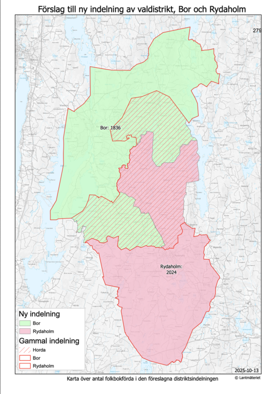 ∗ Valdistriktet Horda delas upp mellan valdistrikten Rydaholm och Bor. Hänsyn till närhet till vallokal och att försöka följa gränserna för församlingen har tagits i beaktande.