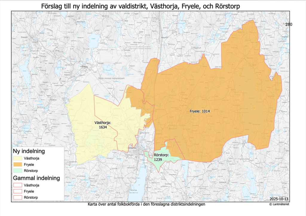 Bild på förslag till ny indelning av valdistrikten Västhorja, Fryele och Rörstorp. Bild: Värnamo kommun  [5/5]