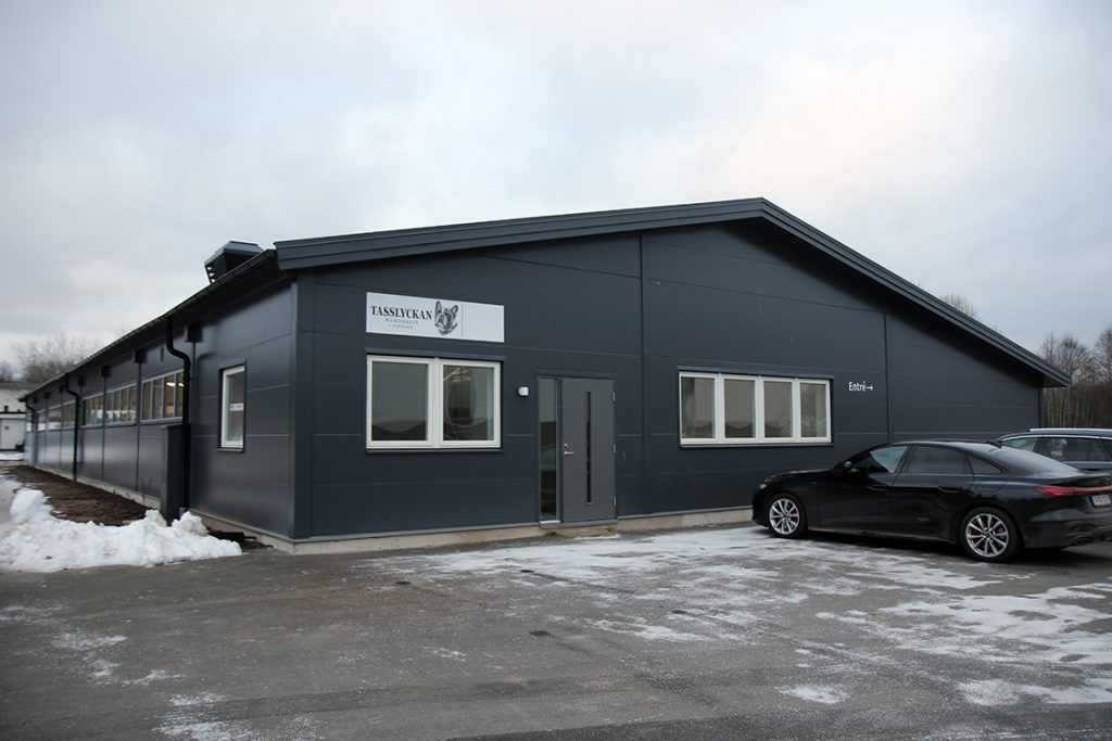 Innanför väggarna på det gamla lagret på Expovägen lyser flitens lampa. På drygt en månad har fastigheten genomgått en total förvandling både på in- och utsida. Nu står snart Tasslyckans hunddagis redo att tas i bruk.