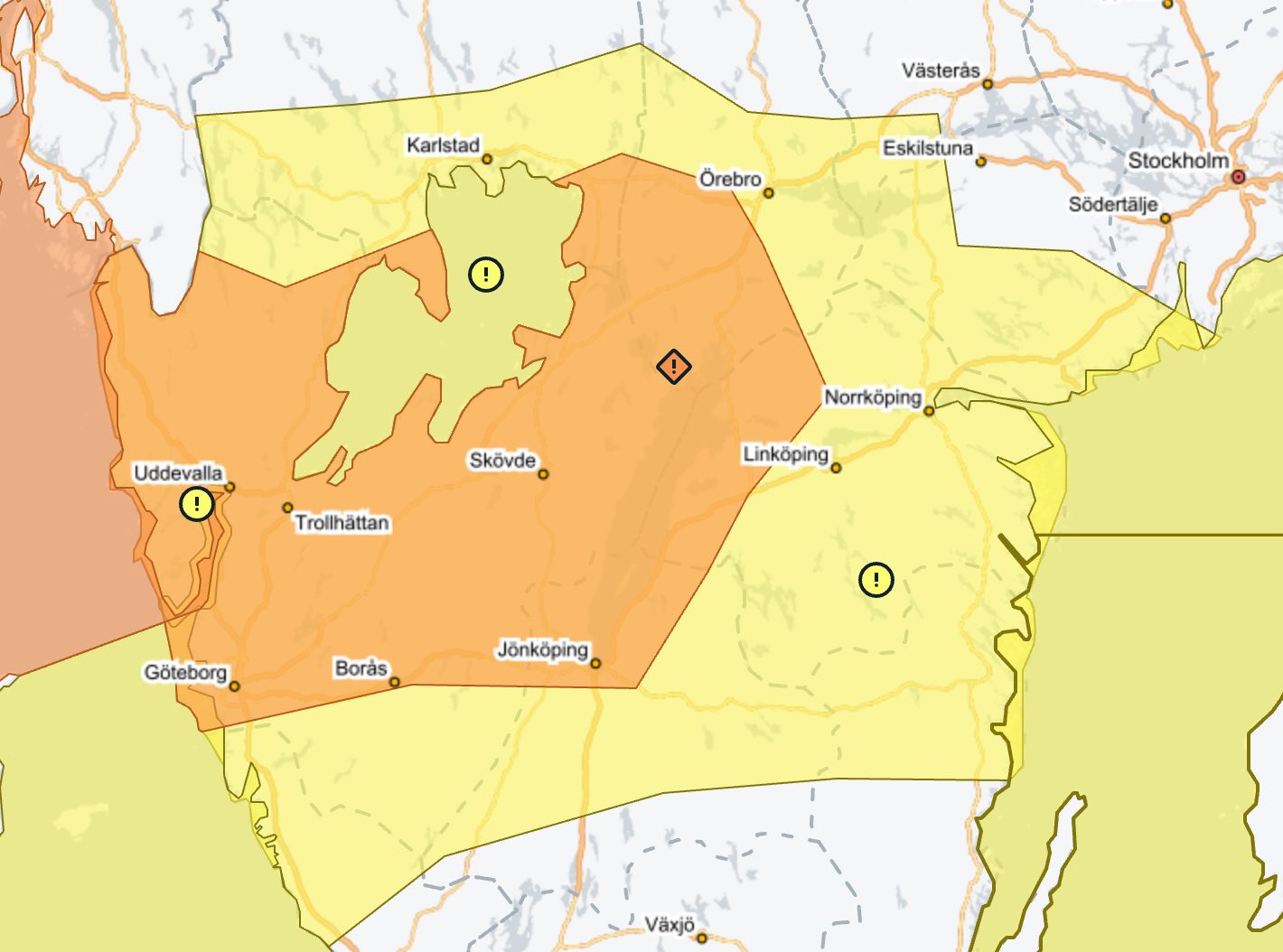 Stationer där tågtrafiken kan påverkas är: Bratteborg, Bredaryd, Forsheda, Halmstad C, Hovslätt, Jönköping C, Kinnared, Klevshult, Landeryd, Månsarp, Norrahammar, Oskarström, Reftele, Rocksjön, Sannarp, Skillingaryd, Smålandsstenar, Taberg, Torup, Vaggeryd, Värnamo C på sträckan Jönköping-Vaggeryd.