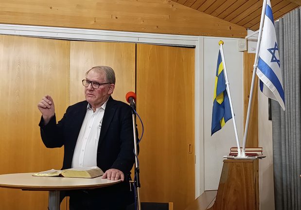 – Israel har haft tre stycken viktiga funktioner i vår tid. Den första funktionen var att det var genom Jesus som försoning bringades för hela mänskligheten. Han var den kvinnans säd, om vilket Gud talade redan på syndafallets dag, som skulle krossa ormens huvud. Den andra funktionen som det judiska folket har det är att den här boken (Bibeln) är ett judiskt dokument. Den kommer inte från någon frikyrklighet i Sverige, utan den kommer faktiskt från det judiska folket. Sedan har Israel en tredje funktion som inte ännu har gått uppfyllelse: att Jesus ska komma tillbaka. När han kommer tillbaka så kommer han inte till Värnamo utan han kommer till Olivberget i Jerusalem. Jag tror att det är en av orsakerna till att det är så problematiskt i Mellanöstern: för att till varje pris försöka förhindra att Jesus ska komma tillbaka, för att ”han ska besegra varje fiende med sitt ord och svärd” säger Paulus, för han är segerherren och han kommer att komma tillbaka när tiden är inne.