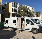 – Under mina resor på Nya Zeeland och Fuerteventura så reste vi i lite mindre skåpbilar med låg höjd och begränsat med förvaring. Jag ville ha en bil där jag kan kombinera resande med vardagslivet, vilket kräver en hel del bekvämligheter för att det ska funka. Både för att arbeta, men också för att kunna resa under en längre tid. Jag utarbetade en önskelista när det gällde valet av bil: det skulle vara bra ståhöjd, det skulle vara en Euro 6-bil, den skulle helst vara en lågmilare och vara i hyfsat bra skick, ha ett miljövänligt motoralternativ och vara 5,4 meter lång. Varför detta mått? Jo, då får den också plats i en vanlig parkeringsficka, berättar hon.