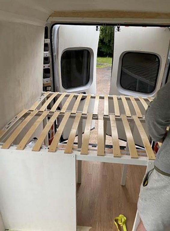 Under sommaren pågick själva byggprocessen. I början av augusti var Bedin klar med vanen. Inredningen består av ett specialbeställt kök från Ikea, två egengjorda träpallar med ett justerbart bord mellan pallarna och en hemmabyggd 140-säng med förvaringsmöjligheter både ovanför och under sängen. För att klara av att jobba på ett säkert sätt har Bedin också begåvat bilen med ett kraftfullt och säkert mobilt wifi.