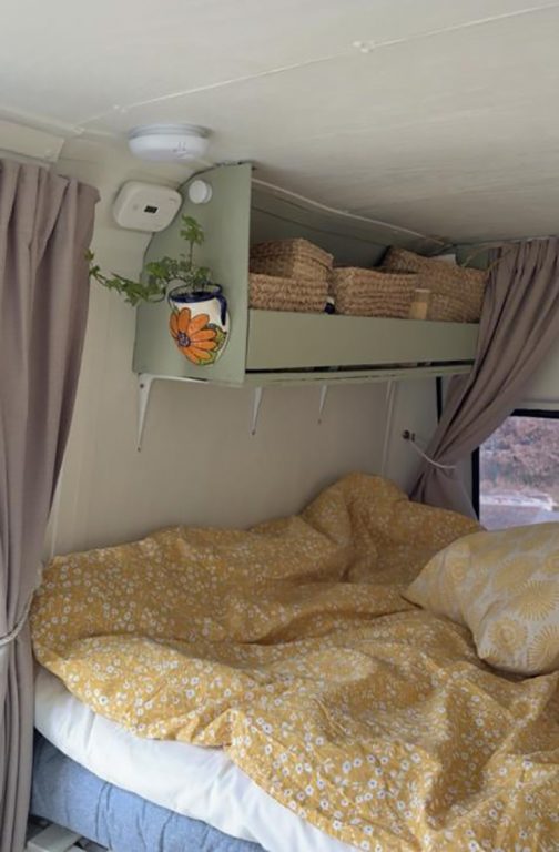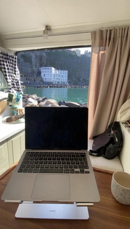 – Jag och en kompis gjorde en resa till Fuerteventura. Där hyrde vi en van och körde runt. Vi avslutade den resan med att göra en tågluff från Italien upp till Sverige. När vi gjorde den resan så insåg man ganska snabbt att det är skönt att ha allting i bilen och ha sitt boende med sig när man reser. Jag insåg också under mina resor att jag ville ha lite mer av ett syfte, inte bara resa runt utan göra något mer av min vardag, säger hon.