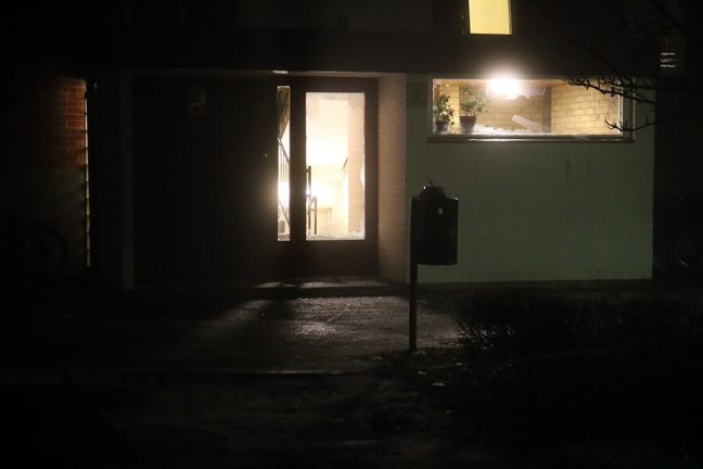 Bild på den skadade entréporten och intilliggande fönster. Bild: David Alin