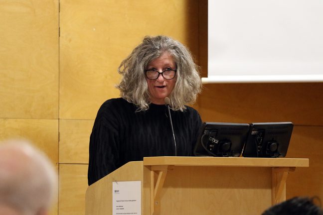 Emina Dautovic (V) läser upp motionen. Bild: David Alin