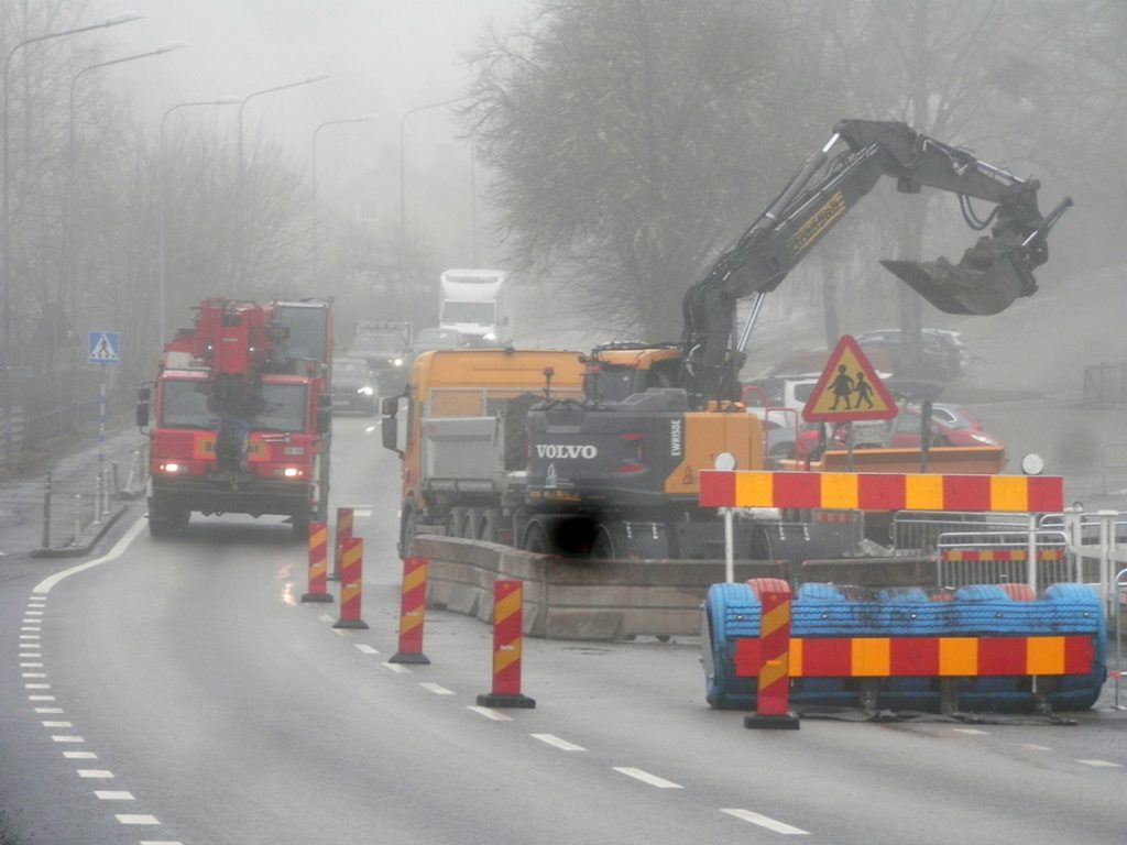 Växjövägen, riksväg 27, är bara öppen på ena väghalvan.