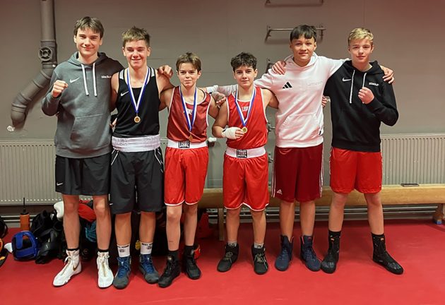 En tapper skara representerade Värnamo Boxningsklubb i den andra deltävlingen i Småland/Hallands diplomserie i Vaggeryd. Pressbild: Värnamo BK