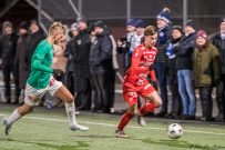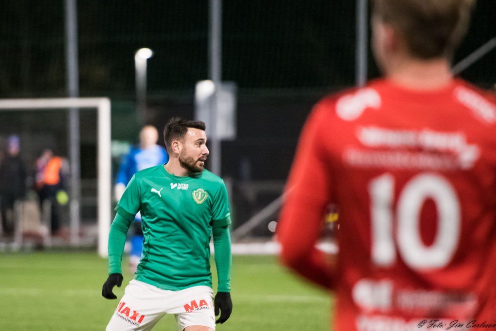 Värnamo var något trögstartade och bortsett från ett par fasta situationer så dröjde det till den 24:e minuten innan första riktigt heta IFK-chansen kom när Carl Johansson skickade bollen tätt över ribban från ganska nära håll.