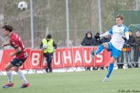 Simon Thern lyfter in den där just Meriluoto når högst och enkelt kan nicka bollen i nät fram till 1−1.