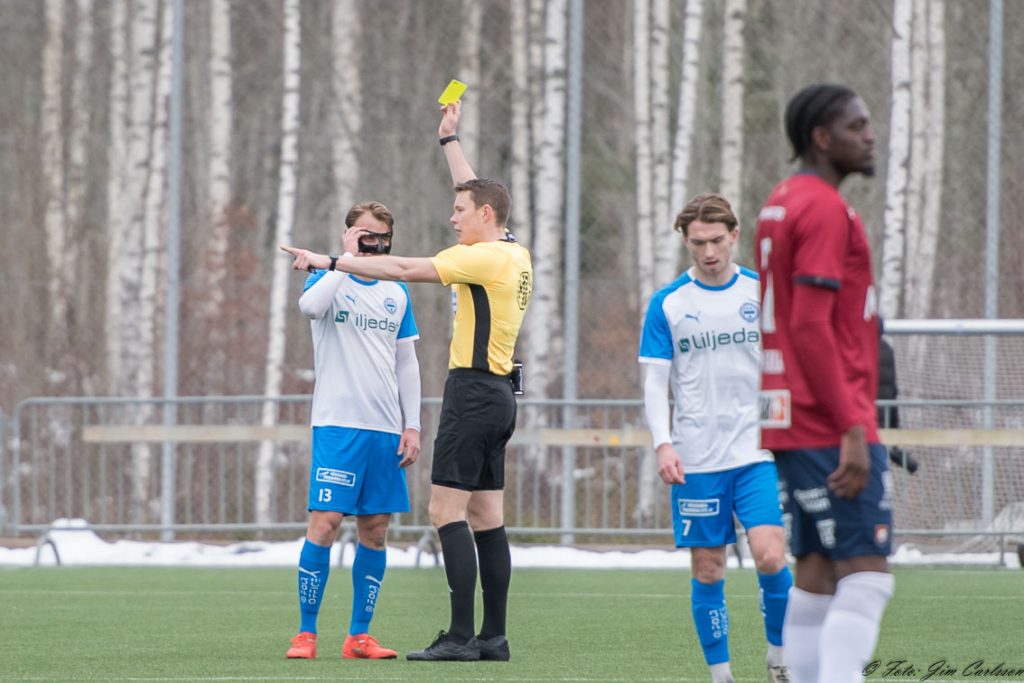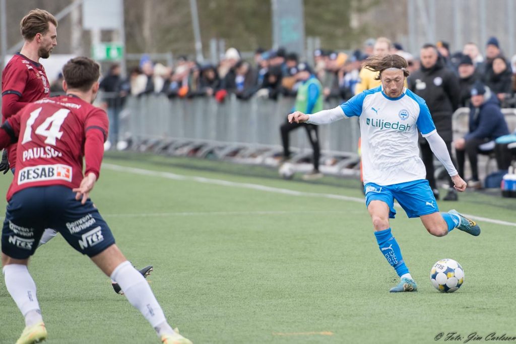 Två minuter senare så ordnar Kai Meriluoto en frispark en bit utanför straffområdet.