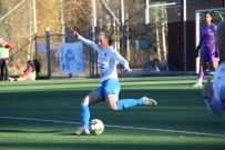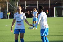 Halmias glädje varade dock bara ett par minuter då en misslyckad offsidefälla satte Frederikke Bruun i ett friläge. Hon rundade målvakten och gjorde enkelt 2−1 i öppet mål.