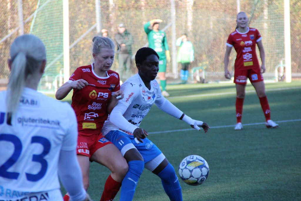 Gästerna svarade dock snabbt när Ellinor Jonsson, ensam från kanten, kunde bryta in och sätta 1−1 bakom Dania Chahrour.