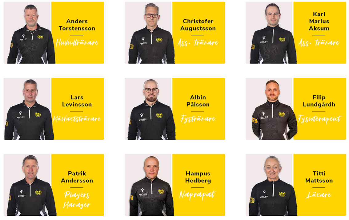 Ledarna kring A-laget i Mjällby. Från lagets hemsida.