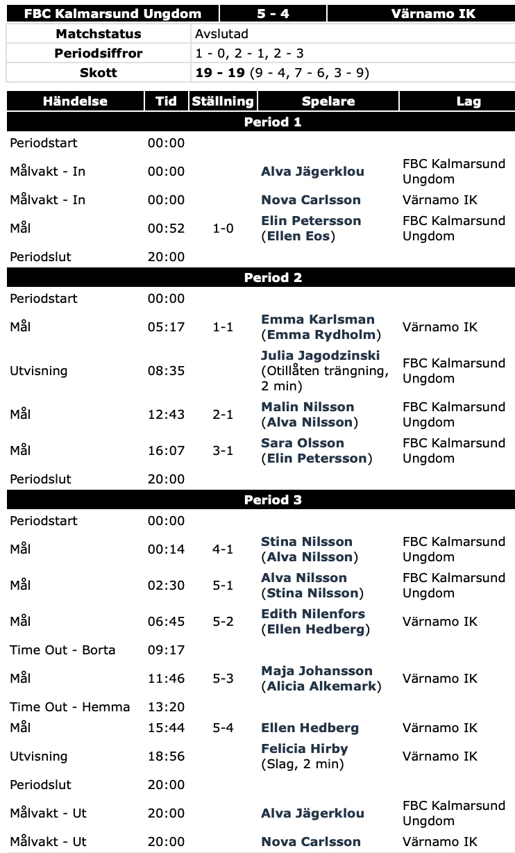 Innebandy Kalmarsund besegrade Värnamo IK med 5–4 i damettan men det var nära att Värnamo hade nått ikapp. Uppdaterat.