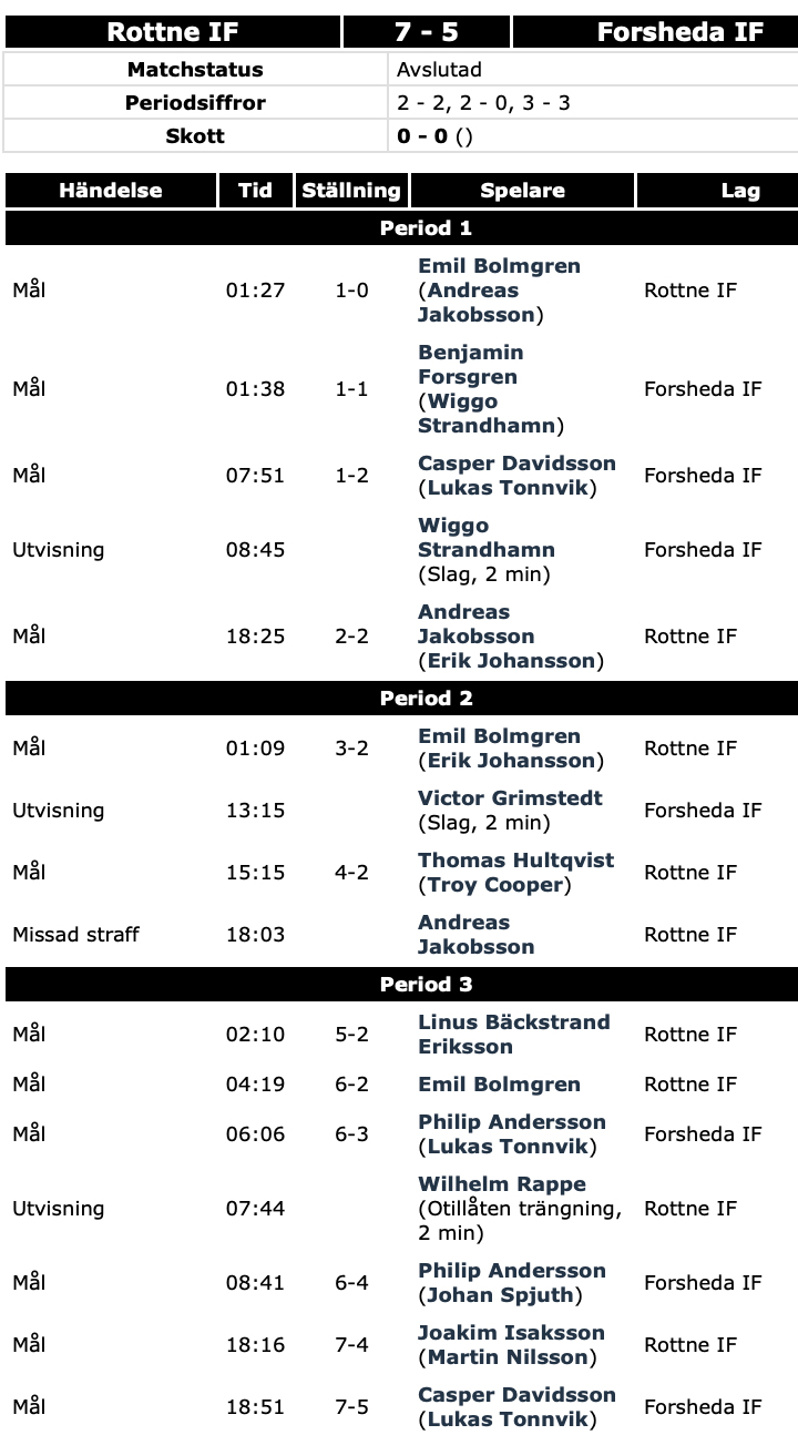Till slut blev det 7–5 (2–2, 2–0, 3–3).