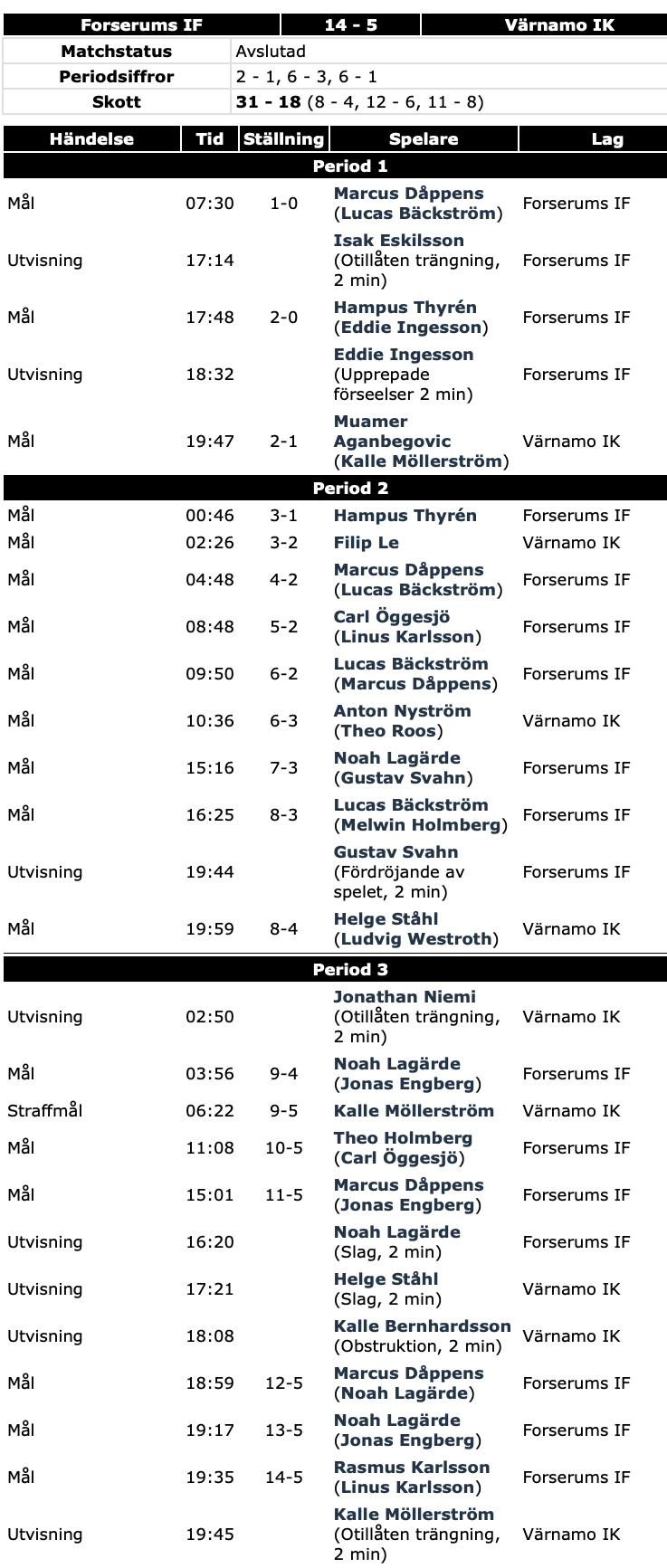 • Vår resultatsida med aktuella matcher finns på denna länk