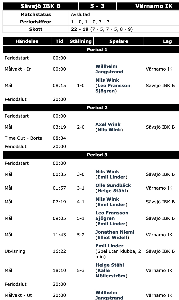 Innebandy Sävsjö B besegrade Värnamo IK i herrtrean.