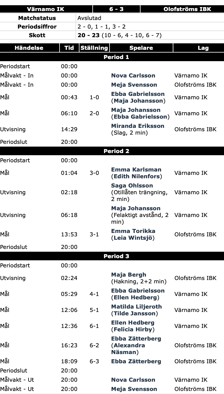 Den här kvällen fick äntligen Värnamotjejerna fart på målskyttet och närmar sig lagen ovanför i tabellen. På paperet har man ett så pass bra lag att man utan tvekan ska kunna klättra minst ett par placeringar. Det är dock juluppehåll och nästa seriematch spelas först den 10 januari och då på bortaplan mot Hovslätt..