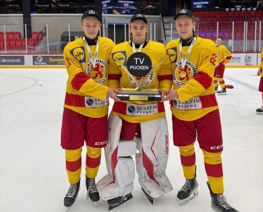 Tre Värnamofostrade killar vann TV-pucken 3 november, 2025 14:10 Ishockey Tre Värnamokillarna var med och spelade hem guldet i TV-pucken för Småland i går. Alla tre spelar i dag i Troja Ljungby men har Värnamo GIK som moderklubb. Adam och Isak Räsänen samt Figge Karlsson. Privatbild. Taggar TV-pucken Dela