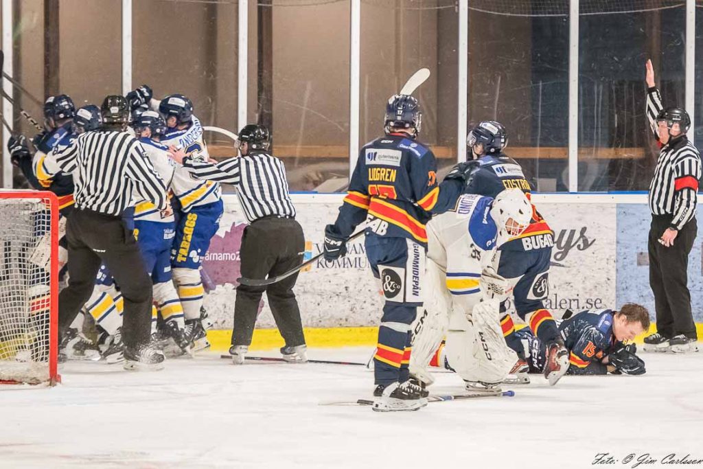 Värnamo, som tidigare varit starka i tredje perioden, lyckades inte närma sig målmässigt utan fick till slut se sig besegrade med 1−5.