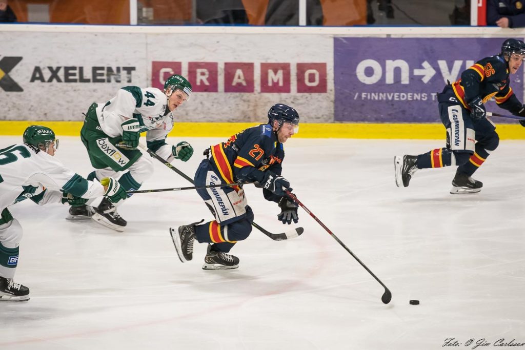 – I andra perioden är det fortfarande lite upp och ner. Vi jobbar hårt, men det är inte fullt synkat. Det är mycket kamp och individuella prestationer som håller oss kvar. Och där måste jag lyfta målvakten Jonathan Petersson – när Jonte storspelar ger han oss chansen att vara med. Han kliver fram i avgörande lägen, tar några riktigt viktiga räddningar och inger ett lugn i laget. Det betyder mycket.