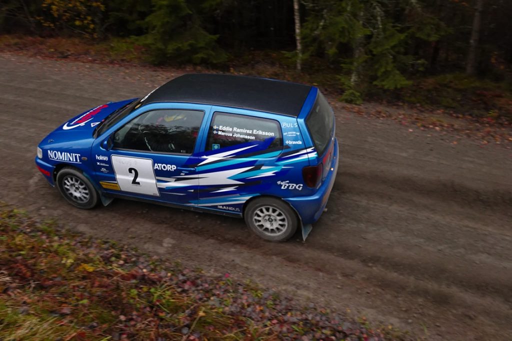 – På andra sträckan släppte min kopplingsvajer så jag var tvungen att köra med fjärde växeln 1,5 kilometer. Vi tappade inte alls så mycket tid ändå. På tredje och fjärdesträckan gav jag och Marcus allt från oss och bilen. Tyvärr räckte det inte ända fram och vi slutade på tredje plats av fyra möjliga i ungdomsklassen. I totalen slutade vi på en kanon 24 plats av 64, inte alls dåligt med en 100-hästarsbil, berättar Eddie.