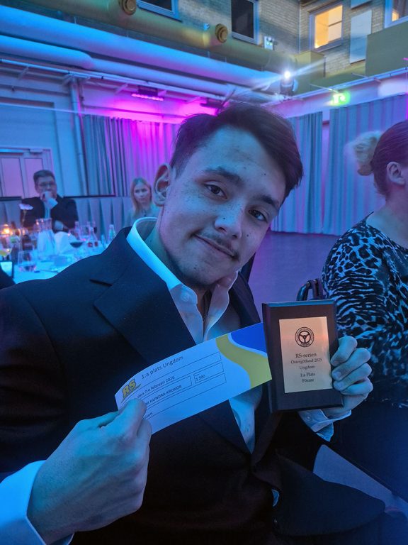 – Jag blev uppkallad på scen igen för att ta emot en hedersutmärkelse som en uppmuntran i min fortsatta rallysatsning och med denna fina utmärkelse från rallygubbarna kom det en check på 20 000 kronor till min rallysatsning. Jag pratade i micken och berättade hur tacksam jag var för det här priset och tackade alla som gör detta möjligt. Detta gör mig ännu mer taggad att folk från rallyvärlden har ögonen på mig och vet vem jag är. Jag kommer att fortsätta att köra mitt bästa och ge allt jag kan på varje sträcka, säger Eddie.