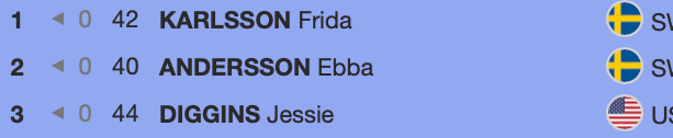 I tio kilometer fri stil blev det dubbelt svenskt i toppen genom Frida Karlsson och Ebba Andersson. Jessie Diggins från USA tog brons.